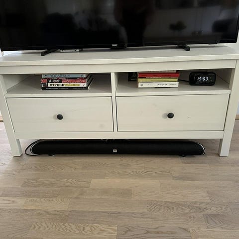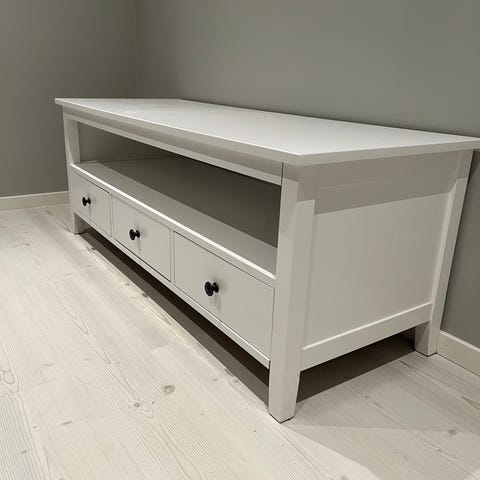 En vit TV-bänk (Hemnes) i fint skick från IKEA säljs.