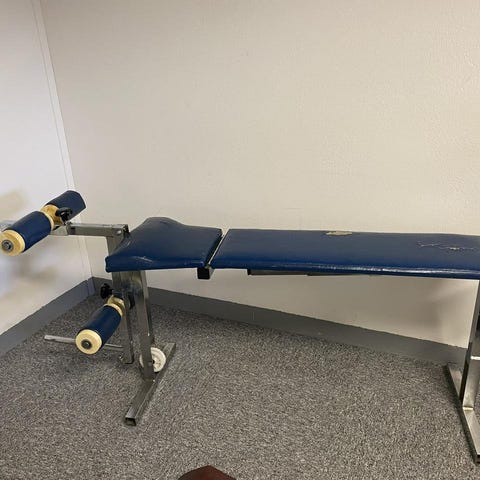 Trekramar träningsbänk med svart vadderad sits och ryggstöd. Bänken har en stabil metallram och är lämplig för olika träningsövningar, inklusive styrketräning och bålträning.