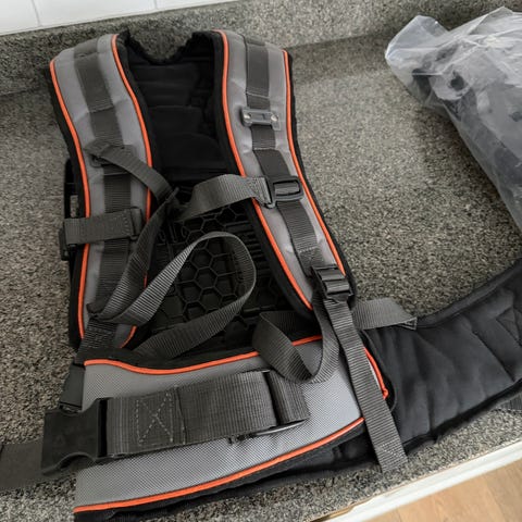 kostar 2500 i butik, Husqvarna sele avsedd för ryggbatteri med justerbara axelremmar och midjebälte för bärkomfort. obs endast sele