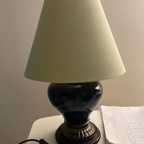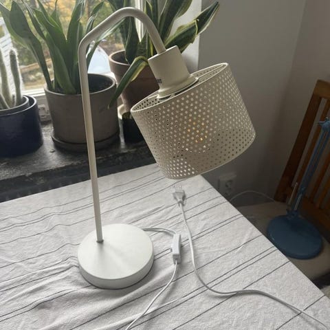 Bordslampa i mycket bra skick, passar både med eller utan lampskärm. Guldfärgad.