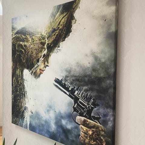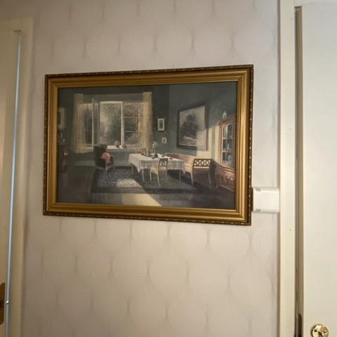 En stor tavla. Har en buckla som går att släta ut med hårfön tydligen 🤷 men inget som påverkar tavlan