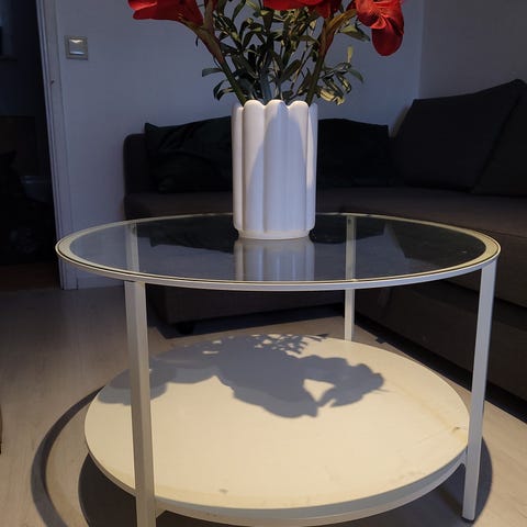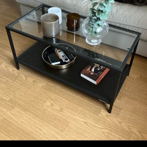 Soffbord 90x45 cm. Repor på glaset som jag försökt fota på bilden annars bra skick