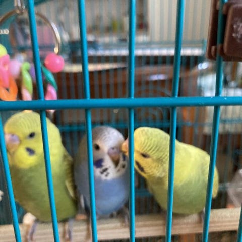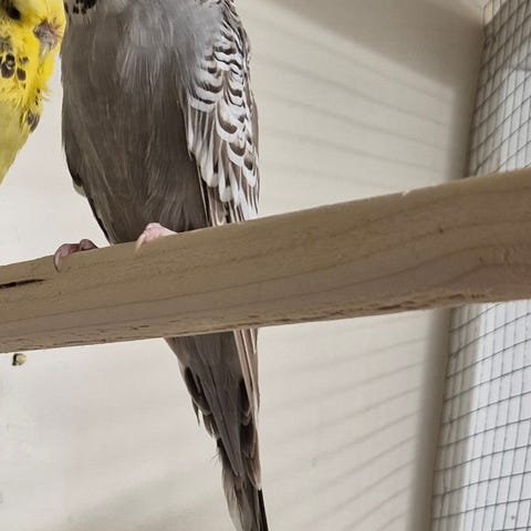 Ett par engelska undulater med ringmärkta år 2025 friska och pigga söker en ny mat skål.