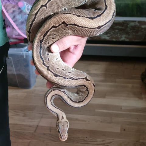 Tofu är en kungspytonorm, en hona, som vi har haft sedan 2021. Hon är nyfiken men får tyvärr inte så mycket uppmärksamhet längre. Hon ömsar och äter som hon ska. Hon är lugn och väldigt vacker. Terrariet med tillbehör ingår i köpet men behöver bytas till ett större så snart som möjligt. Hon är ca 100 cm. Inköpscertifikat finns.