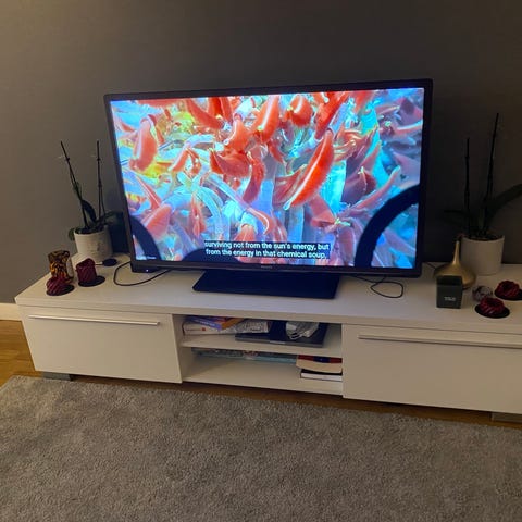 TV-bänk NorStone Khalm 140cm i vit pianolack. Mycket fint skick.