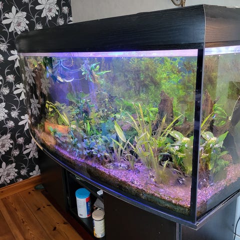 Som rubriken lyder säljer jag nu mitt 125L akvarie med akvariemöbel, pump och belysning (ej orginal belysning)