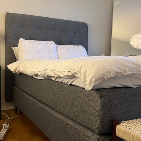 Mörkgrå säng Mio Roma 105 cm från 2025 säljes i nyskick. Kostar 6795 kr på Mio. Leverans kan erbjudas inom ca 2 mil från Göteborg.