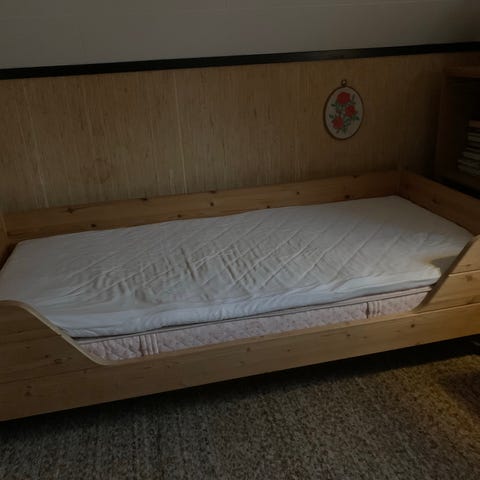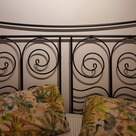 Vit matt sänggavel i trä ges bort. Troligen Lexington. Sekelskiftesstil.