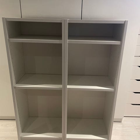 Jag säljer 2 sektioner med Billy hyllor från Ikea. Svart/bruna. Mycket bra skick. Kan finnas några spår av klistermärken men går säkert att få bort.
