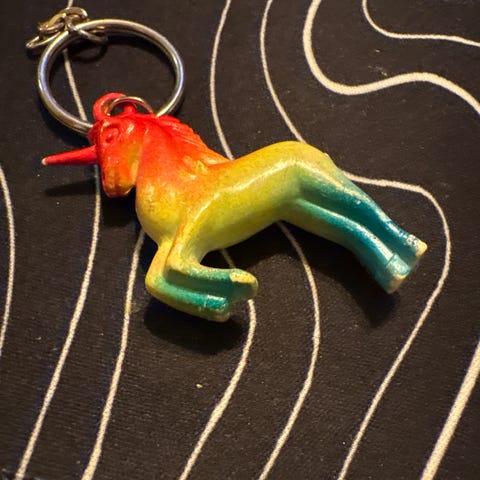 Detta är en nyckelring med en dödskalle och korsade ben.