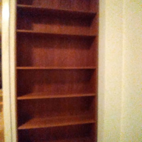 Bokhyllan är isärskruvat och står längst framme i garaget på bottenplan, inga trappor! Man kan köra intill porten och lasta in direkt.
