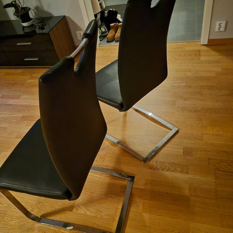 Bord med stolar i skinnimitation.