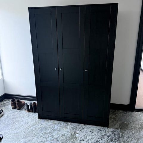 Garderobsenheterna står på en sockel. Nu ska vi platsbygga nya garderober och säljer då dessa till ett mycket billigt pris. Alla delar inklusive hyllor och hängare för 995 kr mot att köparen monterar ner dem. Nedmontering måste ske senast den 25 januari.