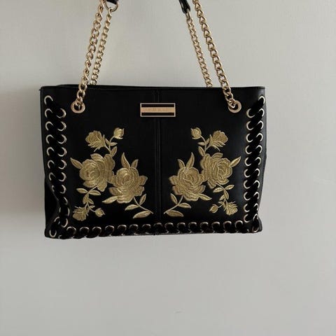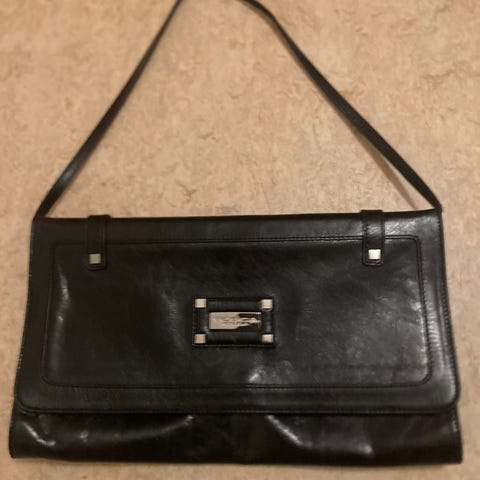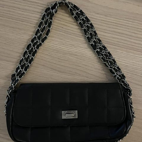 Svart väska med justerbar axelrem och ringdetalj