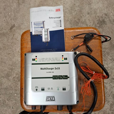 Defa SmartCharge 12V batteriladdare med IP65-klassning. Laddaren har en utgång på 14,4 V och 7A, samt en maxström på 6A. Den är utrustad med indikatorlampor för laddstatus och ström på/av-knapp. Produkten är designad för att användas med 12-voltsbatterier. Kan skickas om köparen betalar frakten. Annars hämtas i Norberg