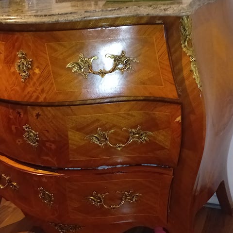 Antik Byrå med marmorskiva i trä och marmor