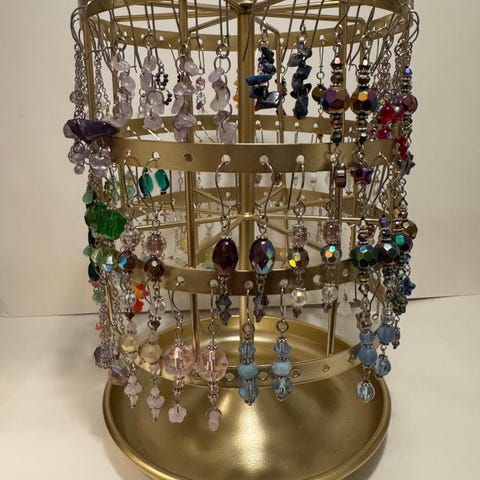Handgjorda örhängen i främst kirurgiskt stål, finns några par i silverpläterad nickelfri metall. Mycket halvädelstenar och glas. 80-120kr paret plus porto