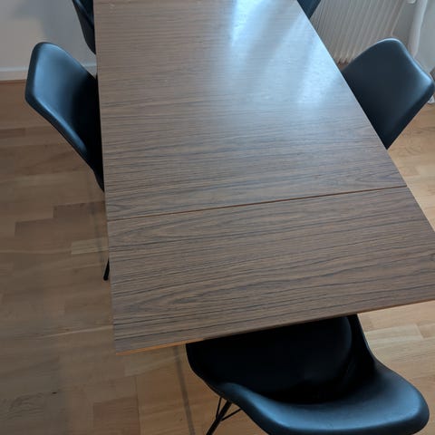 Mor och far har ett fint bord med 6 stolar och 2st iläggskivor som dom gärna vill sälja snabbt och smidigt.