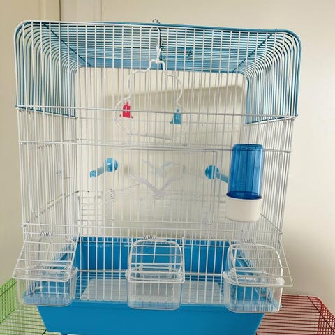 Stålbur i svart färg avsedd för smådjur eller fåglar. Buren har flera luckor för åtkomst samt en utdragbar nederdel för att underlätta rengöring. Har tidigare använts till råttor. Måtten är: