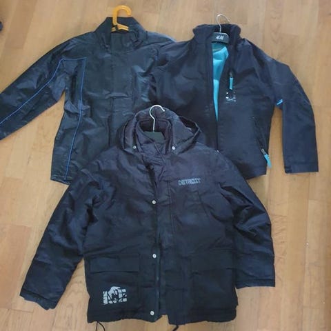 En lila vedhuggarjacka.
