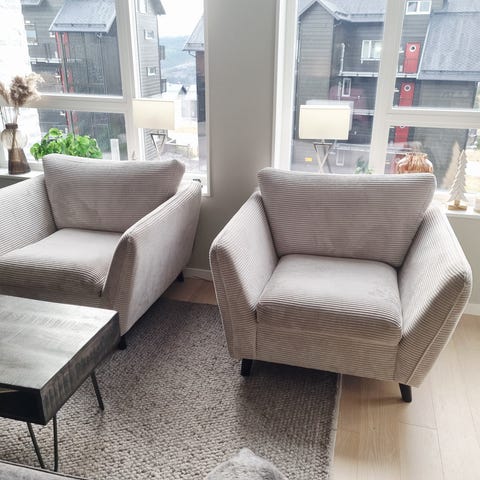 Tresitssoffa och två fåtöljer med lyftfunktion i bra skick av märke Elof från Mio möbler. Nypris 27000:-