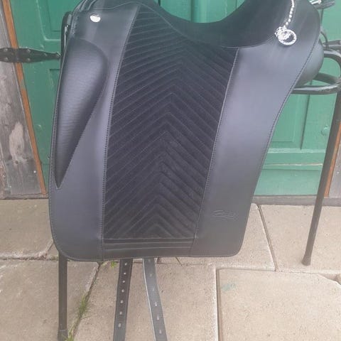Säljer min Equipe Olympia Mono dressyrsadel. Tillverkad 2021 men uttagen 2022. Mkt Sparsamt använd de senaste två åren. Sadelstorlek: 16 tum (rymlig i sitsen så passar även 16,5”), bomvidd +3. Har passat bra till både en D-ponny o C-ponny med kort anläggningsyta medium till vid bomvidd.