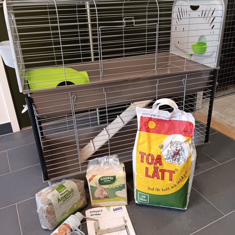 Nya burar i tre plan med sex fack lämpliga till kaniner o andra smådjur.Lätta att ändra till större fack.