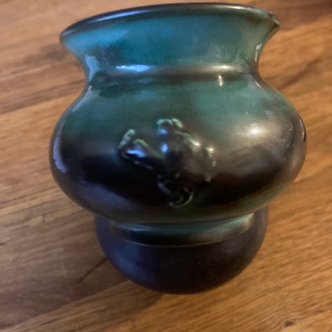 Upsala Ekeby vas i rött och brunt keramikmaterial. Vasens form är rundad med en smalare öppning upptill. Passar som dekorativ inredningsdetalj.