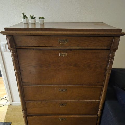 Passar för förvaring och som skrivbord i hem eller kontor. Chiffonjén är i mycket gott skick.