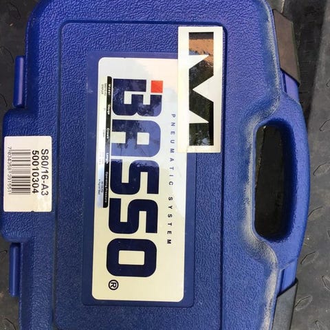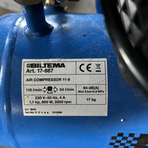 Senco kompressor för t.ex dyckertpistol. Mätartavlan för trycket är trasig men trycket kan fortfarande regleras. Slang ingår ej.