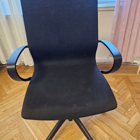 Ergonomisk kontorsstol med ställbar höjd, 3 olika lägen. Mörkgrå klädsel.