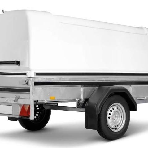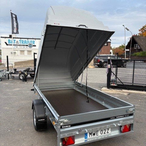 Gediget och praktiskt släp med kåpa som också går att lasta tungt.