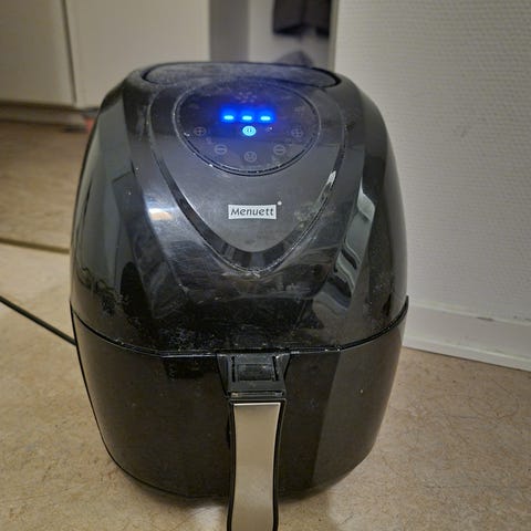 Airfryer, den fungerar men har en estetisk skada (se bild). Swisha 50 kr till röda korset så är den din. Känns tråkig att slänga då den fungerar.