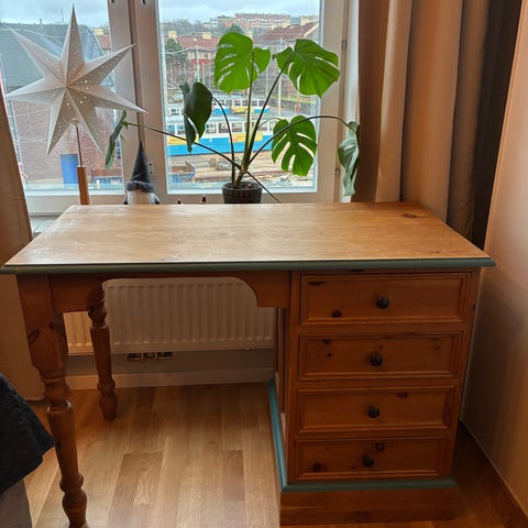 el. skrivbord i trä med metallben