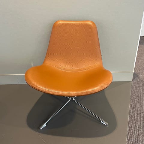 Säljer denna underbara comm chair, en mid century-inspirerad fåtölj med kromade ben och fauxläder i svart. Bekväm och snygg!
