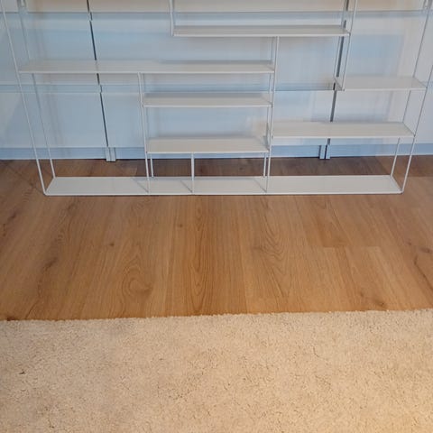 Vitmålad hylla i metall o plåt