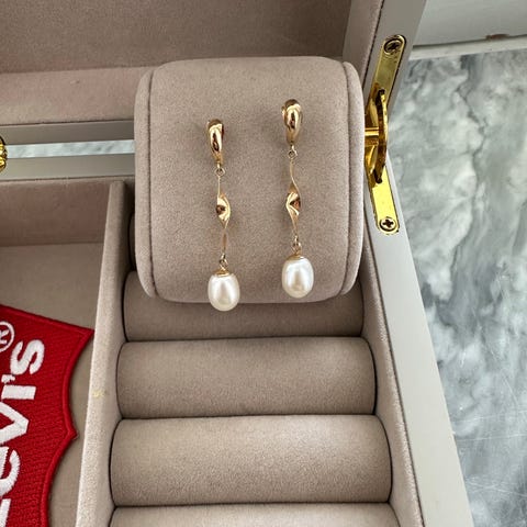 Äkta örhängen i 18k guld och med äkta ovalslipade safirer, ca 1,4 ct. Vikt 2,1g. Köpta på Kaplans