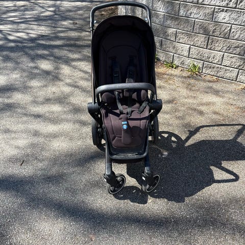 Smidig vagn i bra skick. Blev inte så mycket använd då vi har ett barn som gillar inte att åka vagn.
