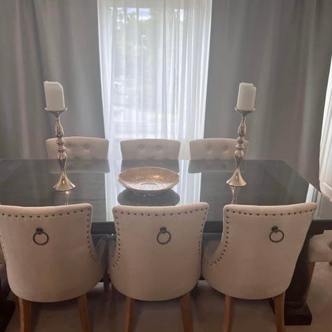 Matbord i glas, 80x180, höjd 74cm. Underrede i svart metall, från habitat