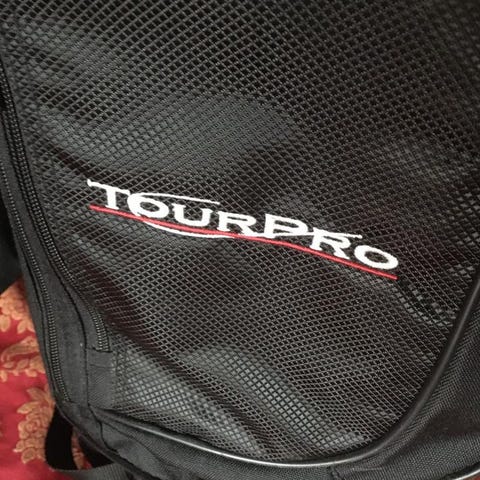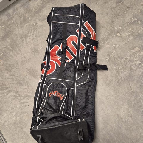Four-D svart golfresebag i starkmaterial. Väskan har flera fack och är anpassad för förvaring och transport.