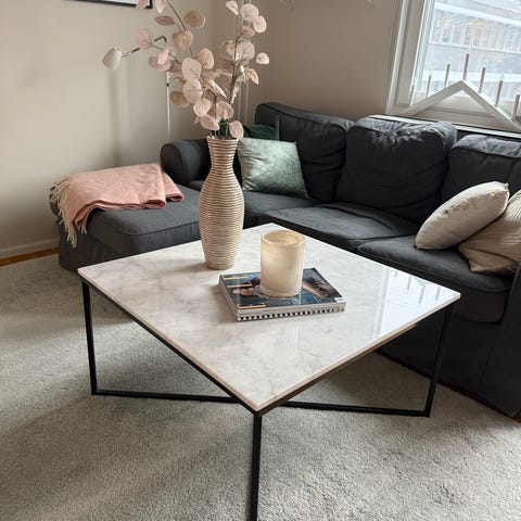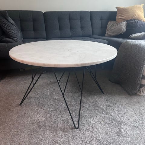Säljer vårt vackra soffbord i äkta marmor med mjuka, ovala former – ett stilfullt och tidlöst tillskott till vilket vardagsrum som helst.