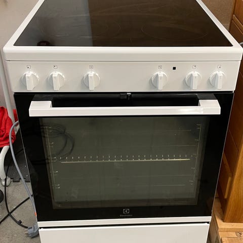 Husqvarna glaskeramikspis med flera vred för inställning av värme och funktioner. Utrustad med ugn och glaskeramikhäll för matlagning.