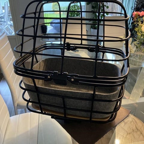 Den svarta videkorgen fästs på styret, så du kan hela tiden se din hund. Ett stabilt plastöverdraget galler fästs med bältesspännen vid korgen. Din hund sitter säkert och kan inte hoppa ut, men har samtidigt en perfekt utsikt hela cykelturen. En kudde i antracit mockaimitation gör cykelkorgen till en är bekväm plats att sitta på.