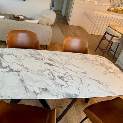 Säljer vårt fina Vortex matbord i brun marmor med sprängda ljusa detaljer i stenen. Bordet är väldigt tungt, marmorskivan är tung men även metallredet.