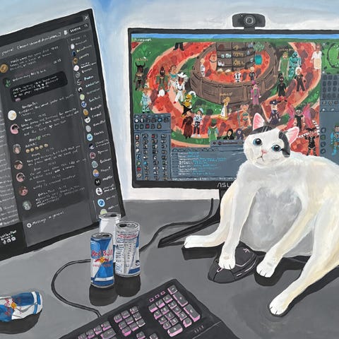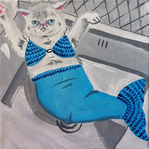 40x50cm katt målning "Inflatable sofa on a regular sofa"