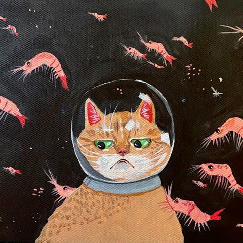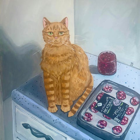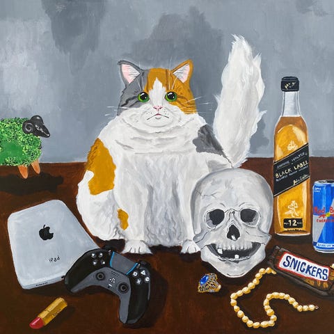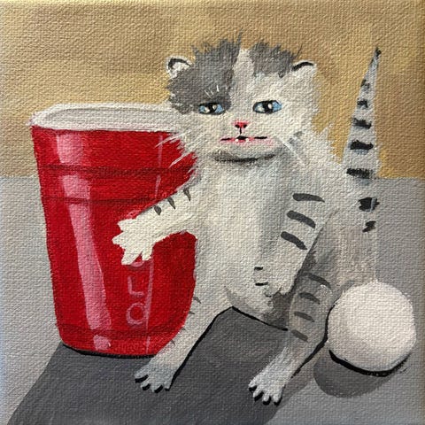 This is a painting of a cat enjoying a beverage on two sofas. Pick-up in Enebyberg, Danderyd. I can accept cash, paypal, or swish.