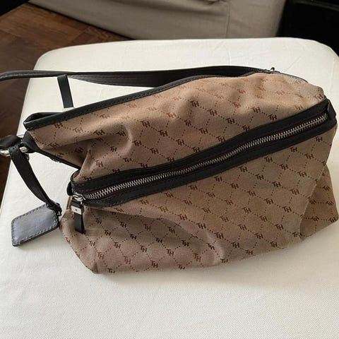 Tommy Hilfiger handväska tillverkad i svart fuskläder för kvinna. Väskan har två bärhandtag och dragkedja för förslutning. Insidan har flera fack för organisering av tillhörigheter.