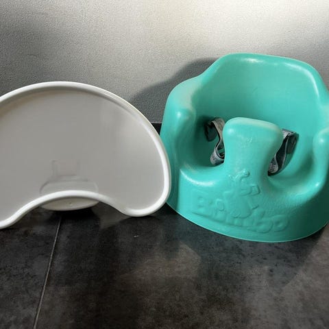 Bumbo barnstol / babysitter med bord / bricka och bälte. I fint skick.