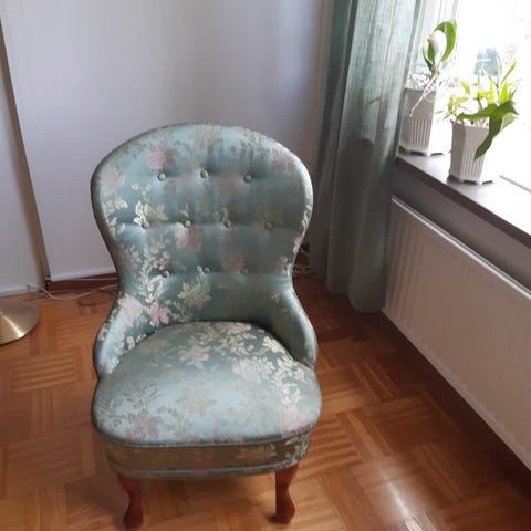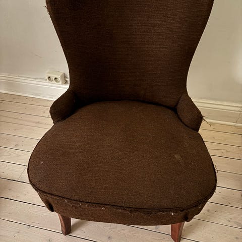 Äldre Emmafåtölj söker nytt hem. Lite sliten i framkant och ett hål i sitsen (se bild)