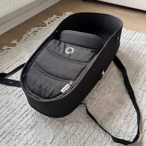 Bugaboo barnvagnsdel i svart färg. Passar för användning som liggdel till barnvagn. Tillverkad med hållbara material och designad för barnets komfort och säkerhet.